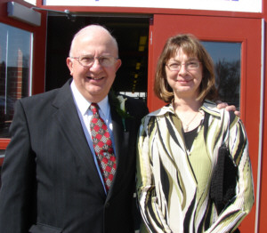 (Below) Mayor Mike Buda, Parishioner, Karen Polega